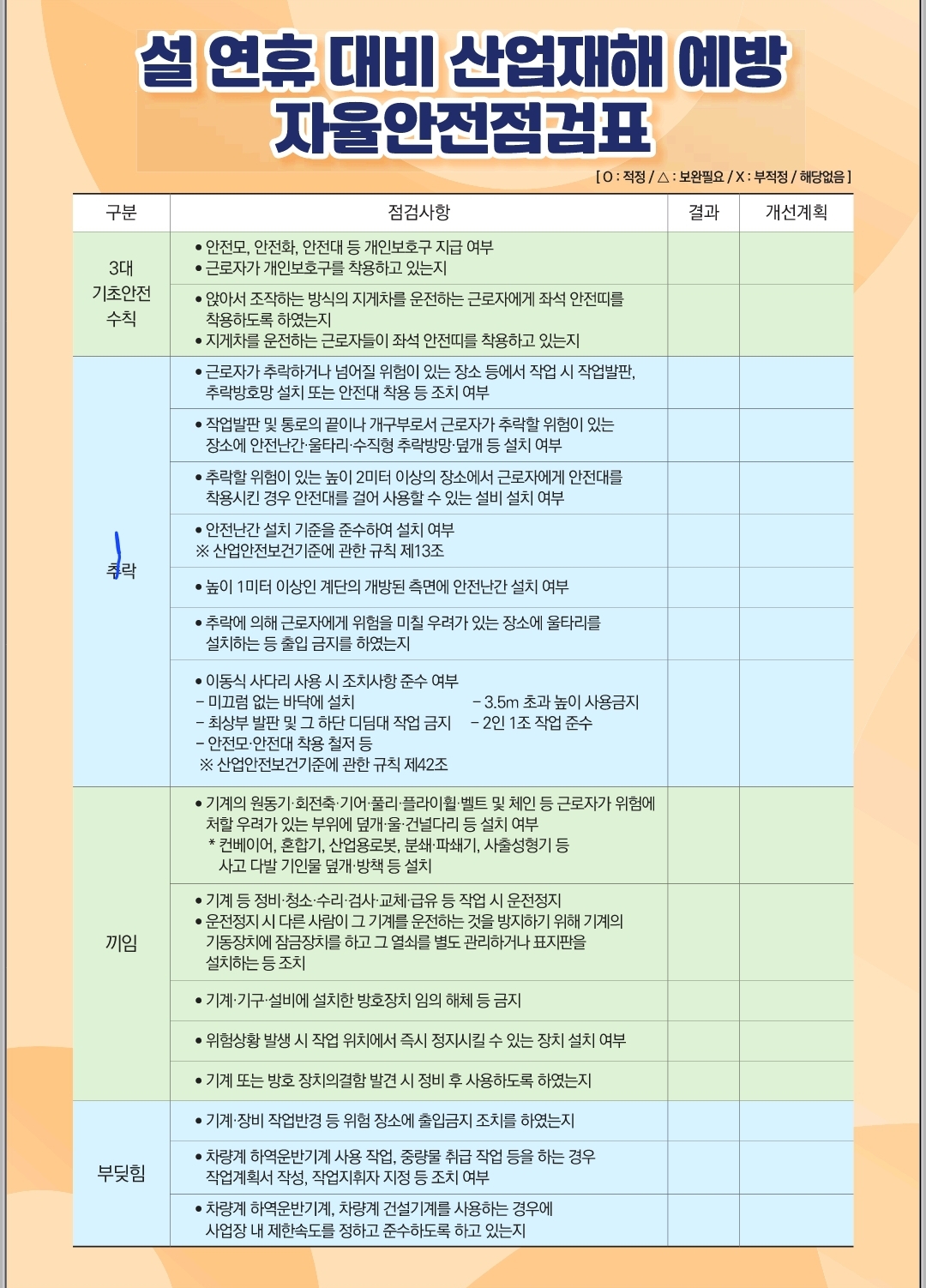 붙임 : 설 연휴 대비 산업재해 예방 자율안전점검표 1부. 끝. |