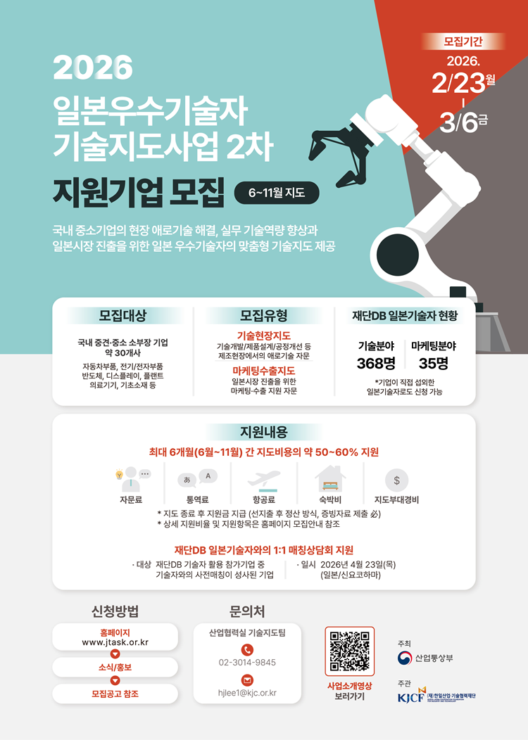 | ‒ | 「2026 일본우수기술자 기술지도사업 2차 지원기업 모집」 안내 |