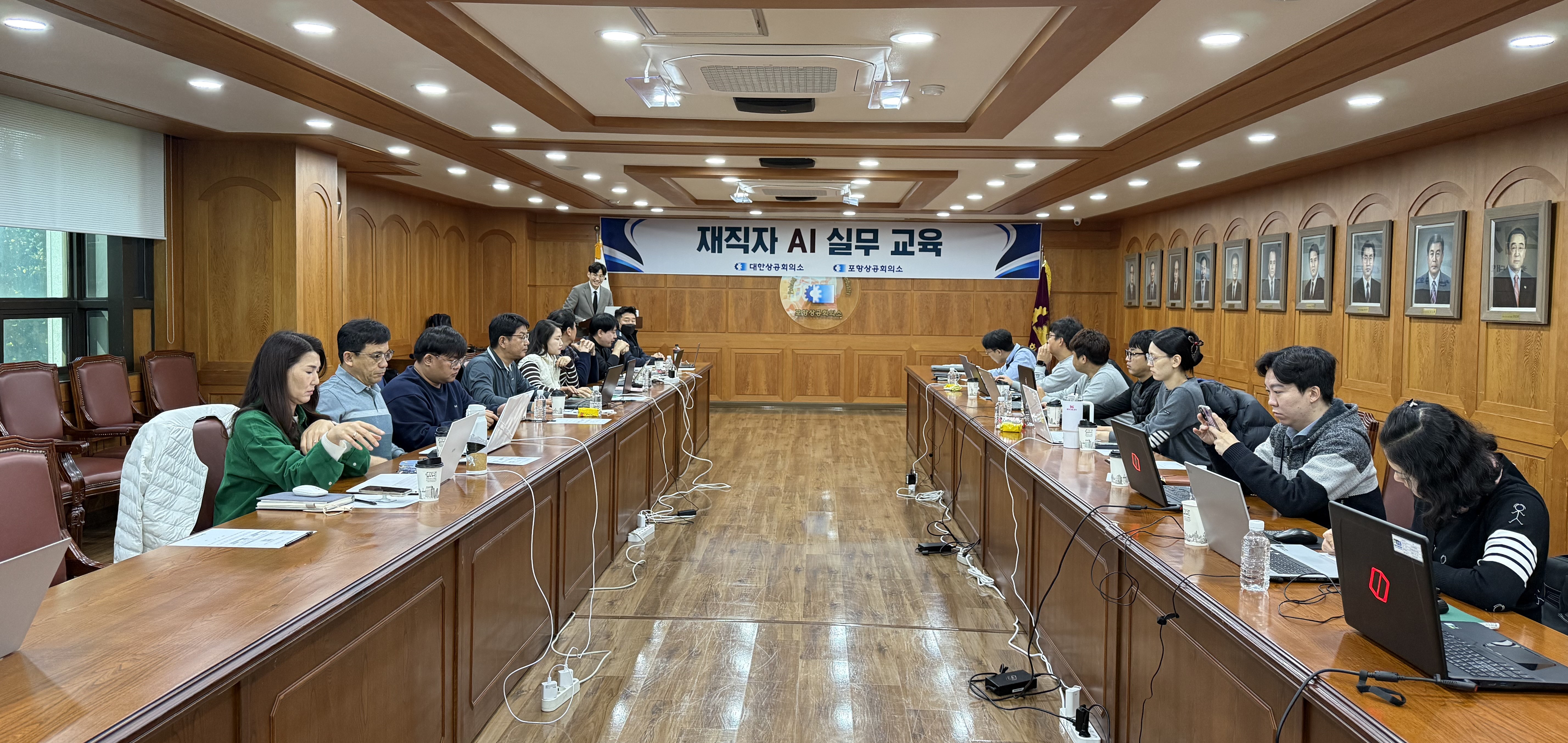 포항상공회의소(회장 나주영)는 11월 18일(화) 오전 9시 30분부터 오후 5시30분까지 포항상공회의소 2층 회의실에서 ‘사무직을 위한 AI실무테크닉’ 과정으로 재직자 AI 실무 교육 과정을 개설하였다.
