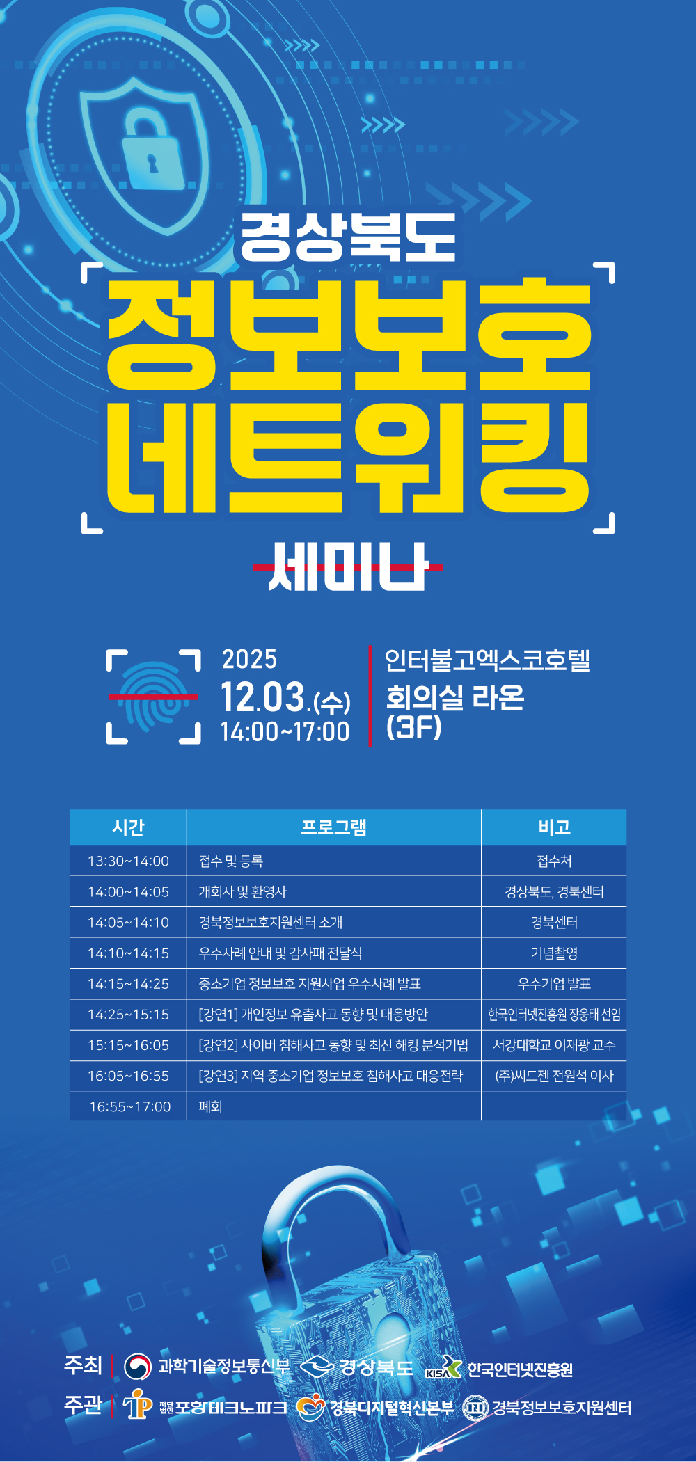 | 제목 | 「경상북도 정보보호 네트워킹 세미나」개최 안내 | ||