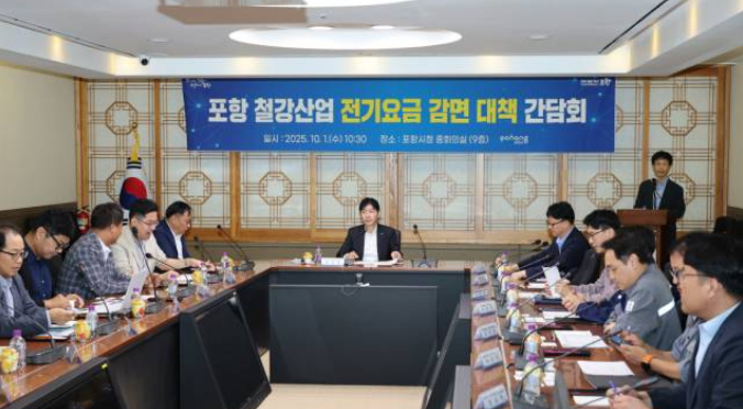 1일 포항시청 중회의실에서는 철강산업 위기 극복을 위한 '산업용 전기요금 감면 대책 간담회'가 진행됐다.